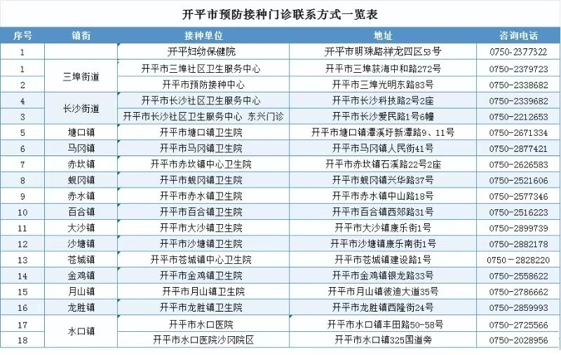 【開平市預防接種門診咨詢詳情】