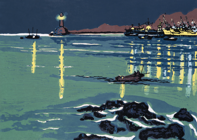 海港燈光 賴少其 44.5x62.5cm 套色版畫 1974年 廣東美術館藏