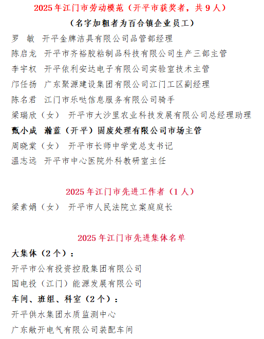 2026年1月19日,江門市委、市政府召開2025年江門市勞動模范(先進(jìn)工作者)和先進(jìn)集體表彰大會。我鎮(zhèn)瀚藍(lán)(開平)固廢處理有限公司市場主管甄小成榮獲“江門市勞動模范”稱號,成為全市環(huán)保產(chǎn)業(yè)一線工作者的優(yōu)秀代表。