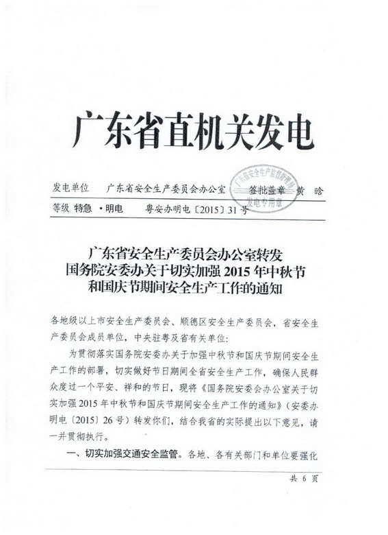 關(guān)于切實(shí)加強(qiáng)2015年中秋節(jié)和國慶節(jié)期間安全生產(chǎn)工作的通知