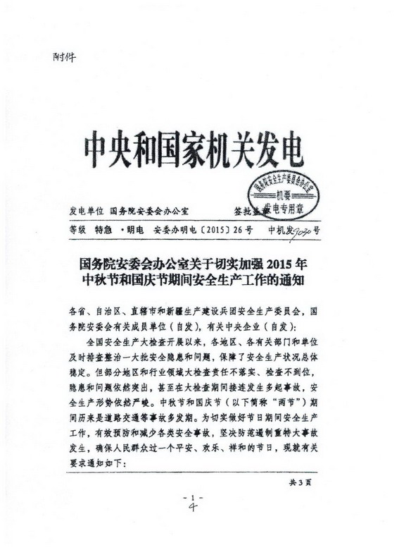 關于切實加強2015年中秋節和國慶節期間安全生產工作的通知