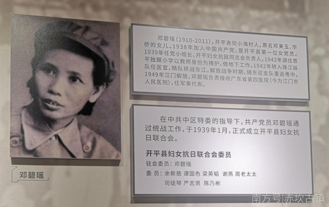 她就是鄧碧瑤(1910-2011年),原名鄧美玉,出身于開平赤坎鎮小海村的一個華僑家庭。雖然家庭富裕,但是不圖安逸的她投身革命跟黨走,于1938年加入中國共產黨,是開平第一位女共產黨員,她負責在當地發動和組織婦女運動。