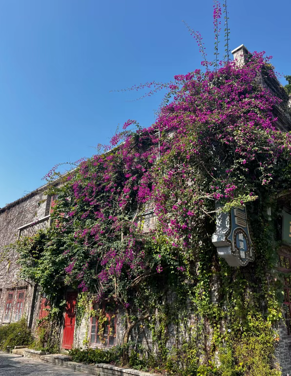 近日,持續的晴好天氣讓開平的暖冬綠意盎然。赤坎華僑古鎮里三角梅、炮仗花、鐵冬青等花木競相綻放,絢麗繁花與古樸的碉樓、騎樓相映成趣,勾勒出僑鄉獨有的冬日浪漫,更成為游客逃離喧囂、享受慢生活的治愈之地。