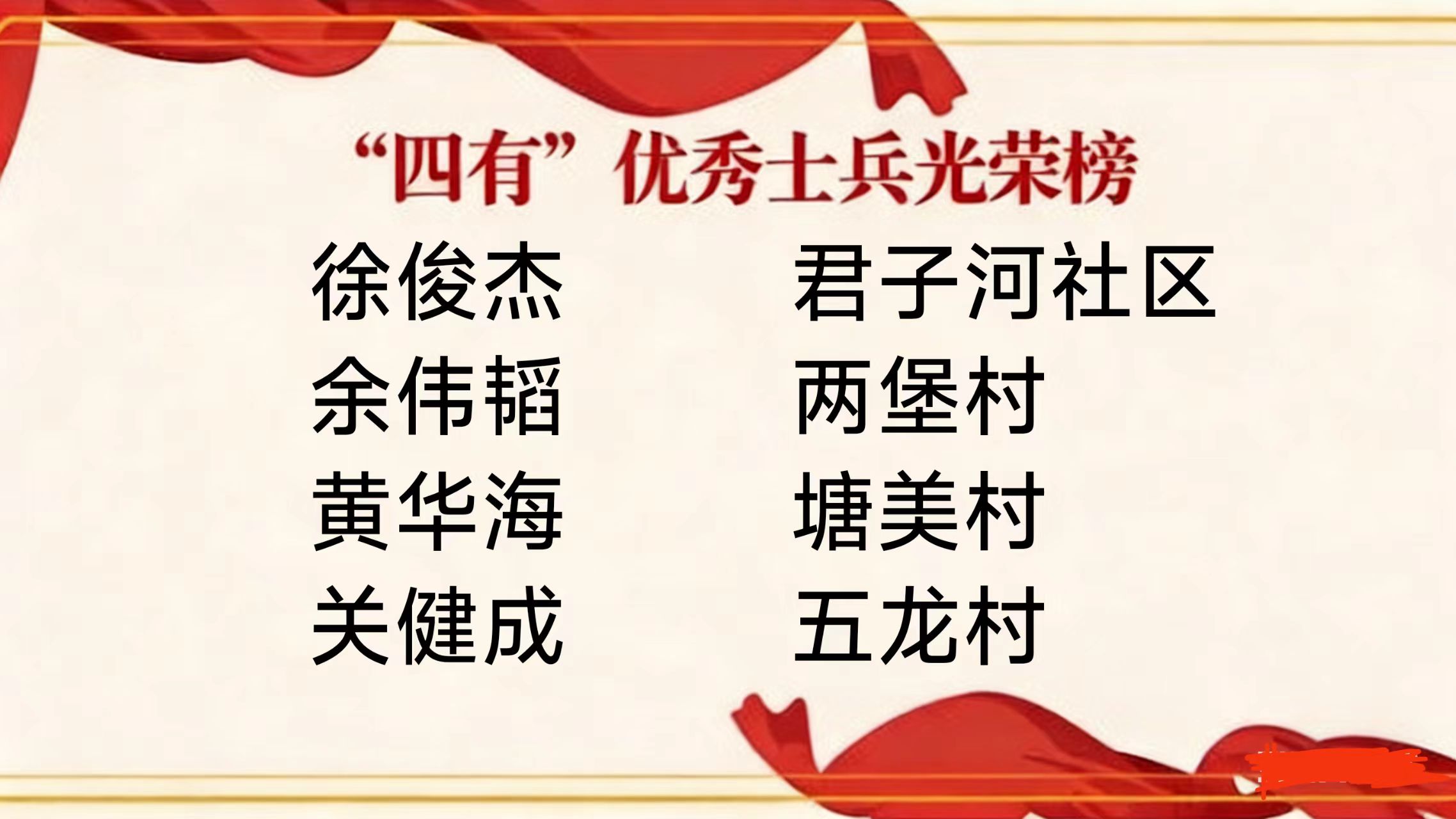 徐俊杰、余偉韜、黃華海、關(guān)健成4位赤坎籍貫軍人,他們在部隊服役期間,始終牢記強(qiáng)軍使命,刻苦訓(xùn)練、奮勇爭先,以過硬的政治素質(zhì)、精湛的軍事技能、優(yōu)良的戰(zhàn)斗作風(fēng)和嚴(yán)明的紀(jì)律意識,在年度考評中脫穎而出,被評為“有靈魂、有本事、有血性、有品德”的新時代革命軍人典范。這份沉甸甸的喜報,既凝結(jié)著官兵本人的辛勤汗水,也離不開家人的默默支持與付出。