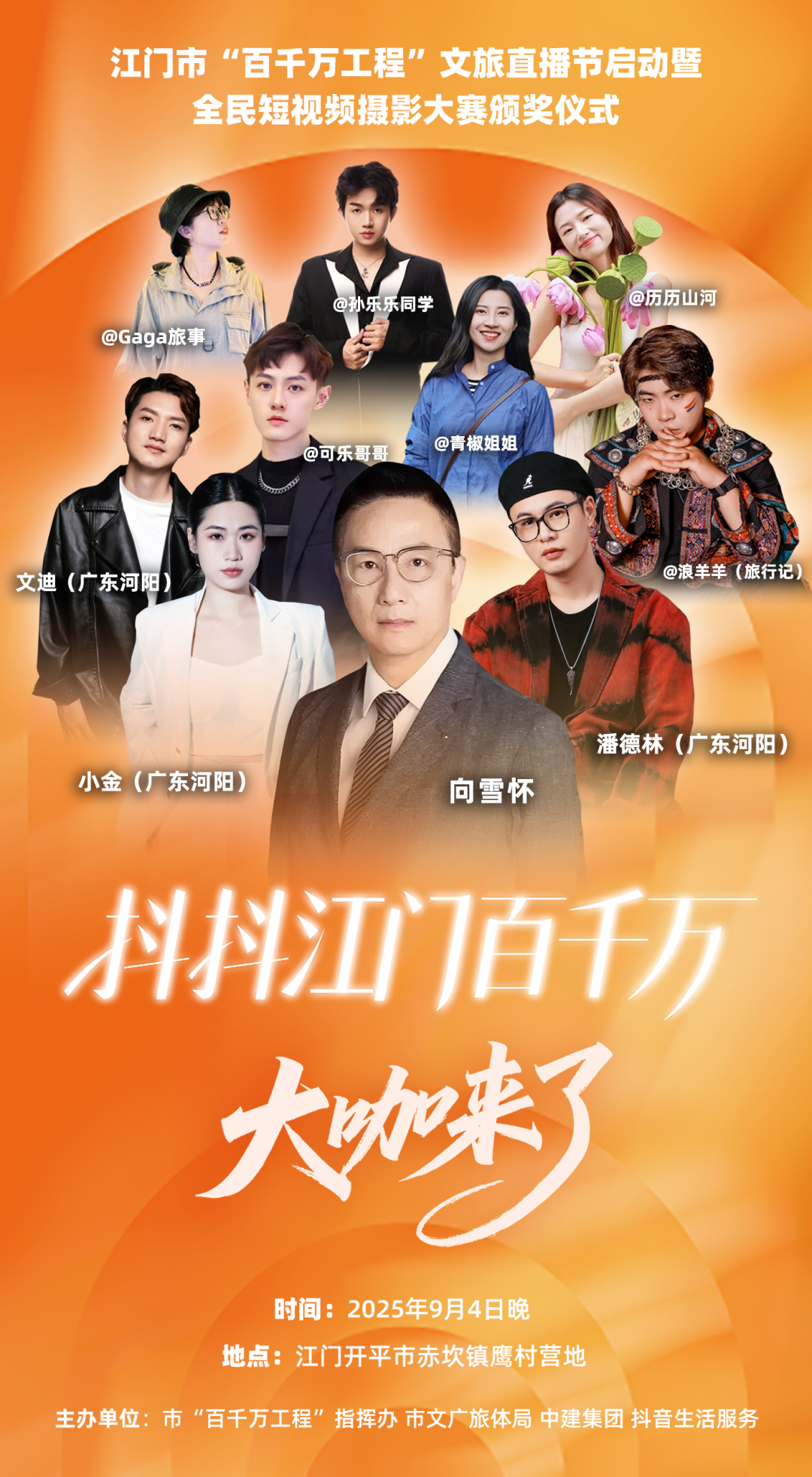 各大獎項到底花落誰家?當(dāng)天晚上,祖籍江門的香港著名詞作家與音樂人向雪懷,將攜@潘德林(廣東河陽)等江門音樂人,以及@可樂哥哥、@浪羊羊(旅行記)、@歷歷山河、@孫樂樂同學(xué)、@青椒姐姐、@Gaga旅事等網(wǎng)絡(luò)達人,與你一同見證榮耀時刻。