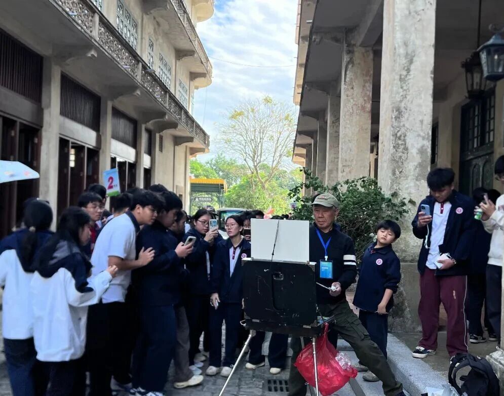 旅美開平籍美術(shù)家司徒維健先生提筆創(chuàng)作,筆觸厚重扎實(shí),引得學(xué)生駐足圍觀,近距離感受創(chuàng)作氛圍。