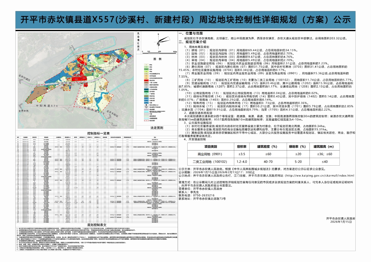 關于《開平市赤坎鎮縣道X557(沙溪村、新建村段)周邊地塊控制性詳細規劃》(方案)的公示