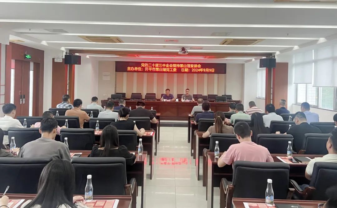 9月9日下午,翠山湖黨工委組織召開黨的二十屆三中全會精神宣講會,以深入學(xué)習(xí)貫徹習(xí)近平總書記在黨的二十屆三中全會上的重要講話精神,準(zhǔn)確把握進一步全面深化改革、推進中國式現(xiàn)代化的重大意義和總體要求,引導(dǎo)翠山湖黨員干部更好地用全會精神武裝頭腦、指導(dǎo)實踐、推動工作,堅定不移地將黨中央各項改革部署落到實處。開平市委宣講團成員、市政府副市長、翠山湖黨工委書記許永鋒作宣講。翠山湖黨工委副書記、翠山湖管委會主任周崇儉主持會議。翠山湖管委會、公共服務(wù)中心、集團公司黨員干部職工,翠山湖派出所、園區(qū)各基層黨支部代表參加會議。