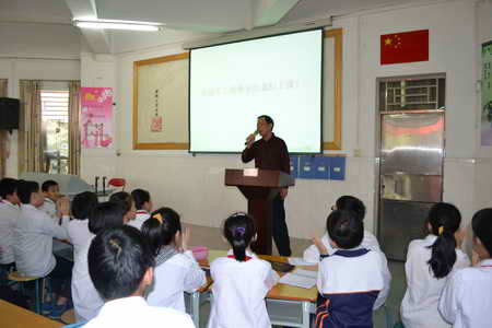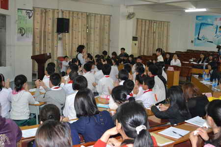 為加強學生思想道德教育,吸引和拉動學校、家庭、社會成員共同參與道德建設。3月27日下午,長沙中心學校在譚宏帙紀念小學舉辦“道德講堂”觀摩活動。長沙中心學校領導,關工委老同志,長沙各學校政工領導和班主任代表,以及譚宏帙紀念小學全體班主任和部分學生共150多人參加這次觀摩活動。 在觀摩活動中,譚宏帙紀念小學結合本校德育科研課題《文明禮儀實踐教育》第二階段計劃,在各個年級推薦的優(yōu)秀課例中,確定由張錦芬老師主持“心存感恩,讓文明禮儀走進家庭”為主題的“道德講堂”示范課。這次“道德講堂”還特別邀請長沙中心學校關工委兩位老同志作為宣讀員參與互動。觀摩活動氣氛熱烈,效果非常好,不少領導、師生感動得流下熱淚。 通過這次觀摩活動,長沙街道各中小學將以點帶面,陸續(xù)開展“道德講堂”建設,定期進行宣講活動,扎實推進社會主義核心價值體系建設,吸引和帶動學校、家庭和社會成員共同參與道德建設,不斷提升廣大師生和學生家長的道德思想道德修養(yǎng),推動文明城市創(chuàng)建工作。