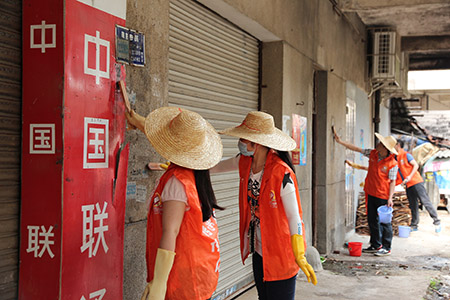長沙義工分會組織一支10名義工的環(huán)保小隊走進梁金山社區(qū),重點清理社區(qū)“牛皮癬”。