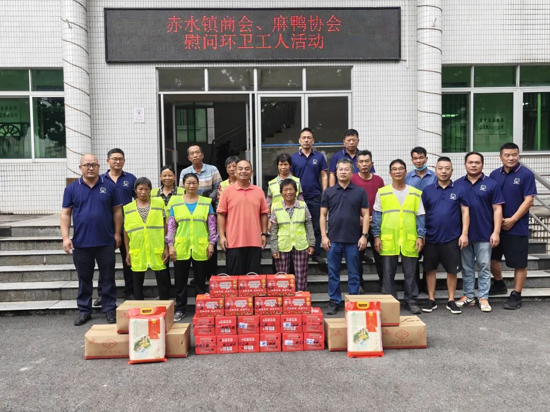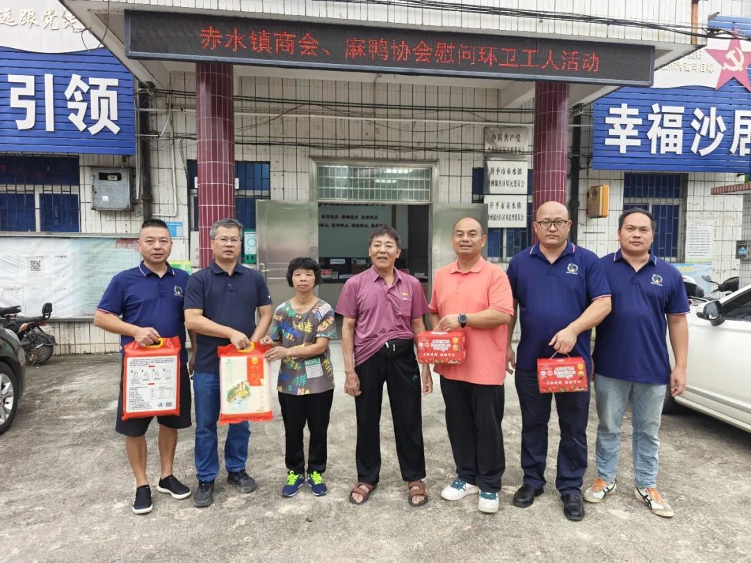持續高溫給環衛工作帶來嚴峻“烤”驗,8月14日上午,赤水鎮聯合鎮商會、開平市麻鴨產業協會開展“送清涼”慰問活動,向全鎮20余名一線環衛工人贈送“赤水優品”禮包(含山楂醋、大米等物資)。黃大勇、張曉冉以及麻鴨產業協會會長、商會代表樊勁松等參加慰問。