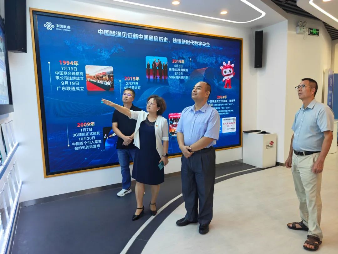 黃大勇一行首先參觀了江門聯(lián)通公司的職工俱樂部與5G數(shù)字化創(chuàng)新體驗(yàn)中心。在職工俱樂部,大家實(shí)地感受了企業(yè)的特色文化建設(shè),以及企業(yè)管理中的人文關(guān)懷。在5G數(shù)字化創(chuàng)新體驗(yàn)中心,通過講解員的細(xì)致介紹和多媒體展示,參觀人員深入了解了中國聯(lián)通在5G技術(shù)、數(shù)字鄉(xiāng)村、智慧農(nóng)業(yè)等領(lǐng)域的創(chuàng)新成果與實(shí)踐案例。其中,數(shù)字鄉(xiāng)村平臺(tái)在基層治理、便民服務(wù)等方面的應(yīng)用,為赤水鎮(zhèn)鄉(xiāng)村振興及基層治理工作提供了寶貴的借鑒思路,雙方就技術(shù)落地細(xì)節(jié)展開了初步交流。