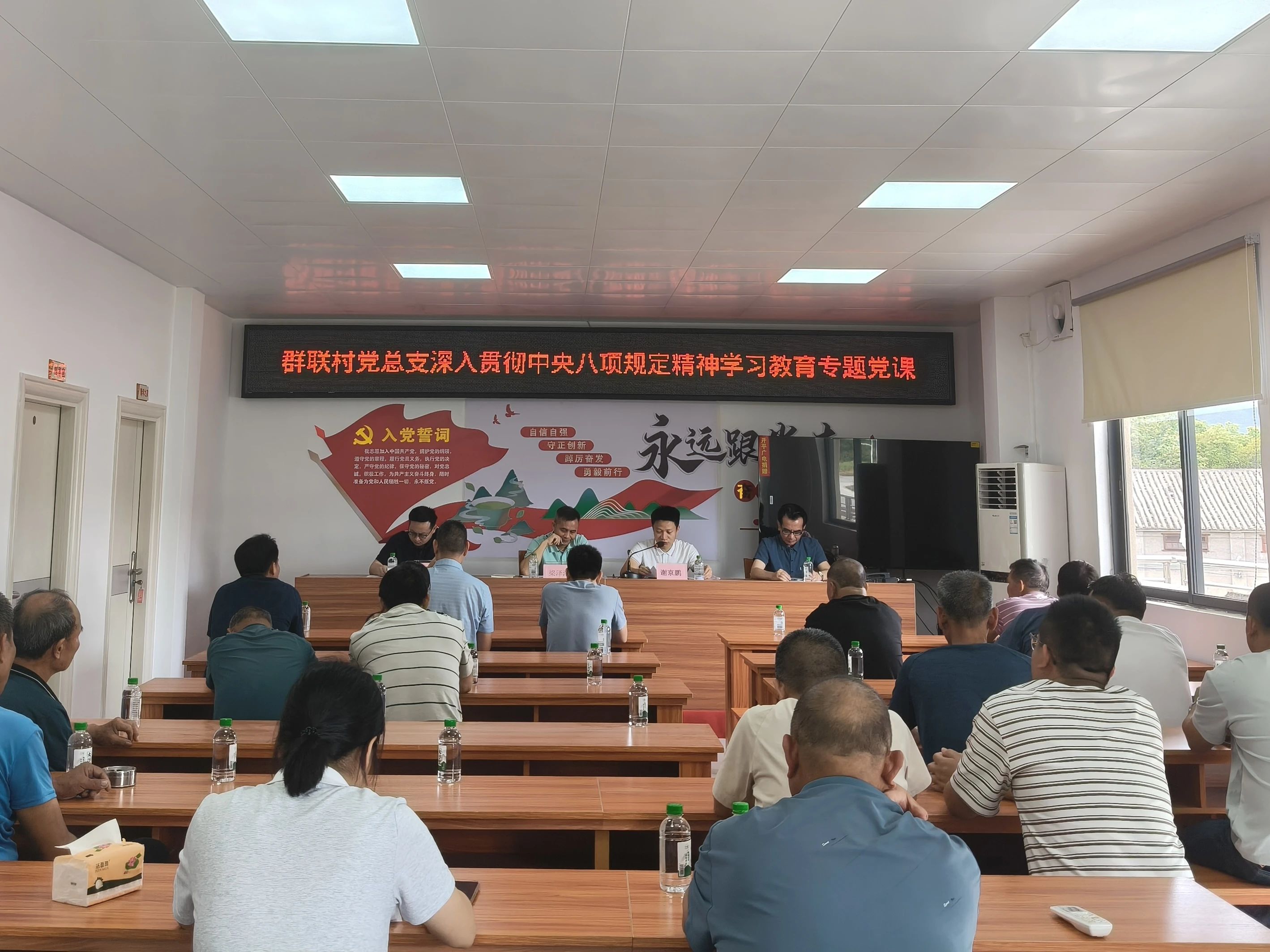 在走訪慰問之余,鎮領導班子成員攜駐村組集體下沉村委會同步開展深入貫徹中央八項規定精神學習教育作風建設專題黨課。