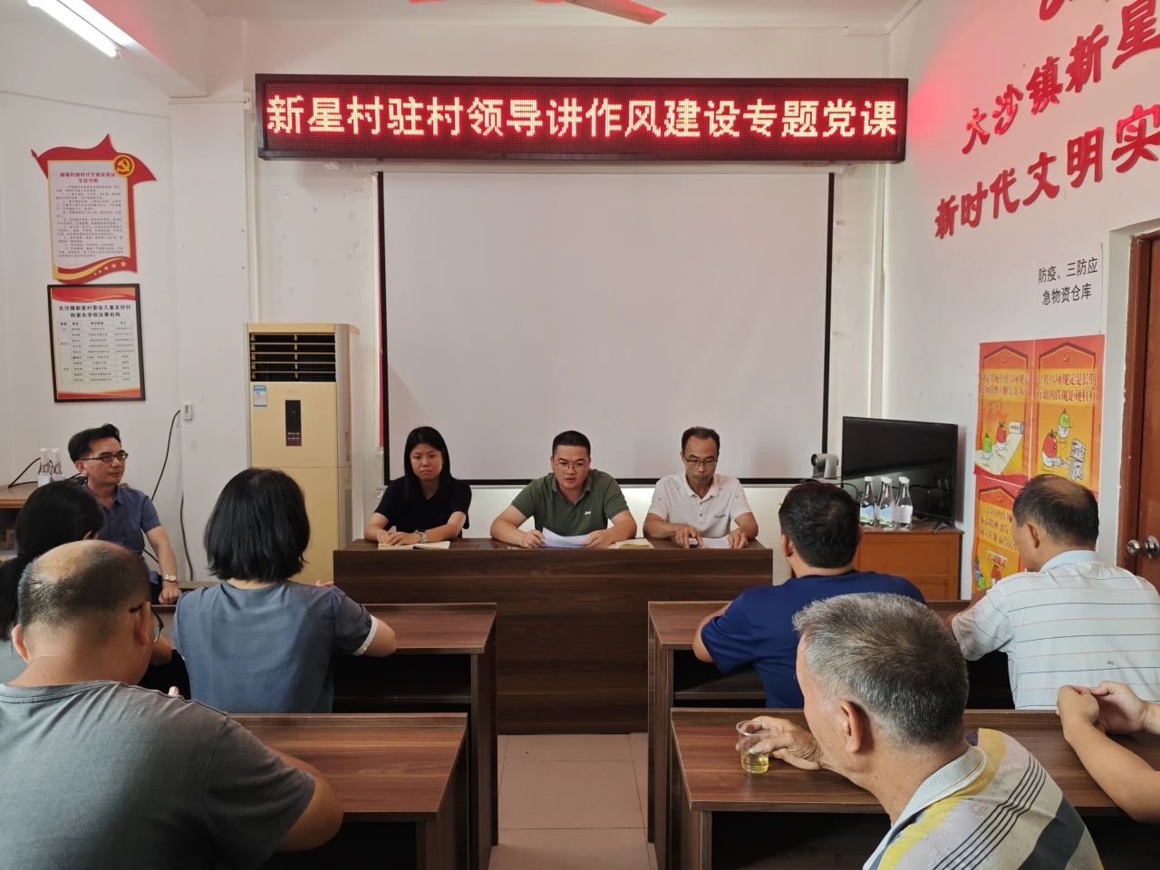 在群聯村委會,鎮黨委副書記、鎮長謝京鵬以“以優良作風奮進新征程”為題講授專題黨課。他圍繞“走深‘趕考路’、引領‘風向標’、筑牢‘護城墻’”三個維度,結合本鎮基層治理、鄉村振興實踐以及江門地區典型反面案例,深入淺出地對加強作風建設進行系統闡釋。謝京鵬強調,作為服務群眾“最后一公里”的基層黨員干部,必須以身作則、廉潔奉公,以優良作風帶動全社會形成崇德尚廉的良好風尚。