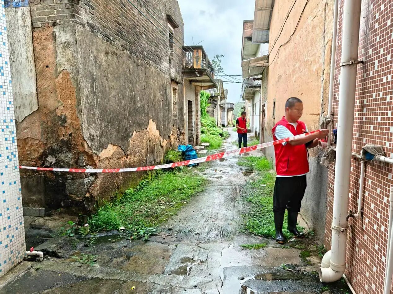 二是排查嚴、隱患清。9月7日,開平市政協副主席黃婉慈直奔大沙鎮關鍵風險點,先后深入魚鱗壩工地、西灣村地質災害點、圩鎮在建工地開展安全隱患排查;鎮應急辦同步聚焦高風險區域,對橫水村、群樂村等地質災害高風險點,欖坑、急水田等野游點及在建工地逐一核查,并提前完成山洪災害高危區19名群眾的轉移勸誡,從源頭阻斷風險;各村也迅速行動,對村內危房、無人居住樓房開展全覆蓋、無死角排查,在房屋周邊醒目位置拉設紅白相間的警示警戒線,形成閉環防護區域。