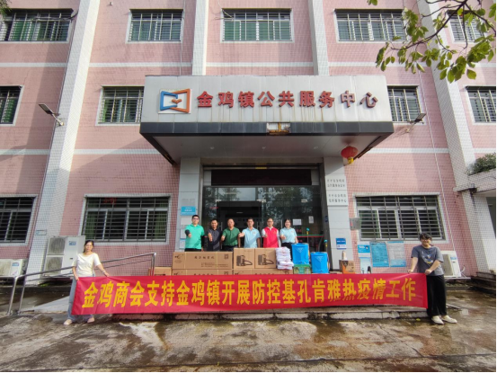 金雞鎮商會率先響應,捐贈價值3.8萬元的熱力煙霧機、氯氰菊酯、蚊香等防疫物資,每天支援10名工作人員參與消殺隊。市住建局、水利局、林業局、市科協、團市委、蜆岡鎮等單位派遣240名志愿者支援,與鎮內力量協同開展清雜、消殺、宣傳工作,形成“政企同心、共抗疫情”的強大合力。