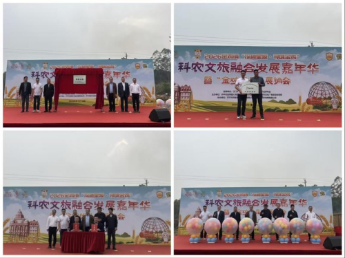 開幕式現場亮點迭出,產業賦能的強勁后勁盡顯無遺。活動現場,金雞鎮為開平市愛立特農業科技有限公司授予“科技小院”牌匾——該公司作為“國家級高新技術企業”“廣東省重點農業龍頭企業”,2025年成功獲批國家級“廣東開平胡須雞科技小院”,自主培育“樂天鳳”胡須雞新品種,建成2個標準化肉雞養殖基地與1個現代化種雞和孵化基地,年產優質雞苗超2000萬羽。與此同時,入選粵港澳大灣區“菜籃子”生產基地的開平金雞王禽業有限公司,被授予“產學研合作基地”牌匾,兩大授牌充分彰顯金雞鎮培育龍頭企業、壯大特色產業集群的卓越成效。