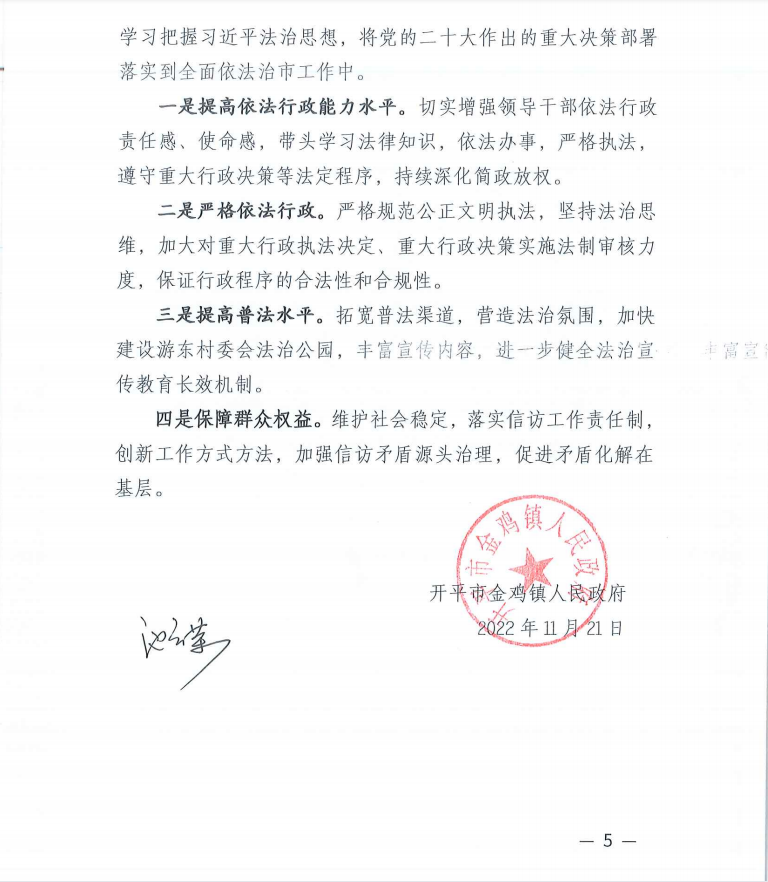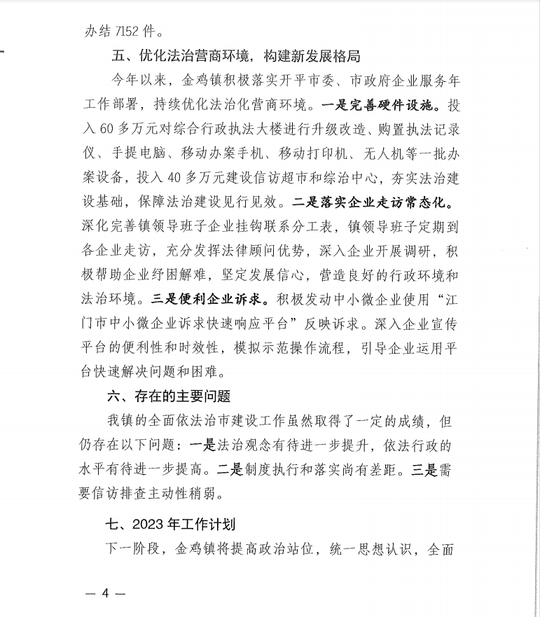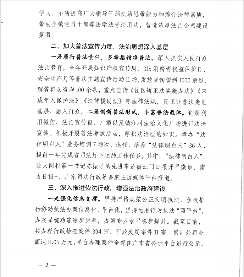 2022年金雞鎮全面依法治市工作總結