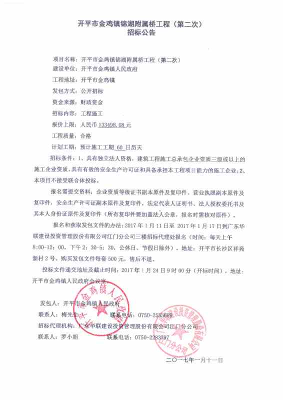 開平市金雞鎮錦湖附屬橋工程(第二次)
