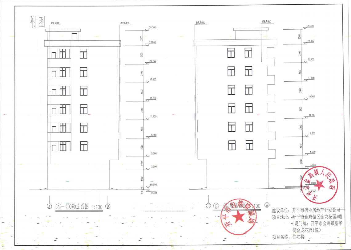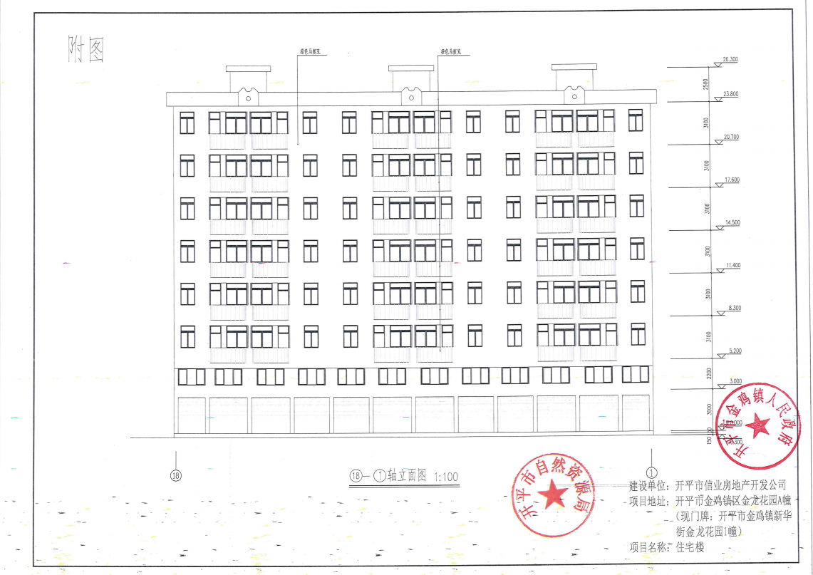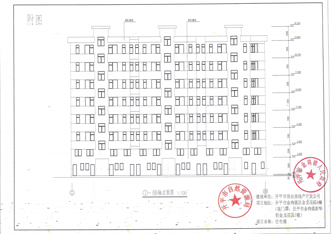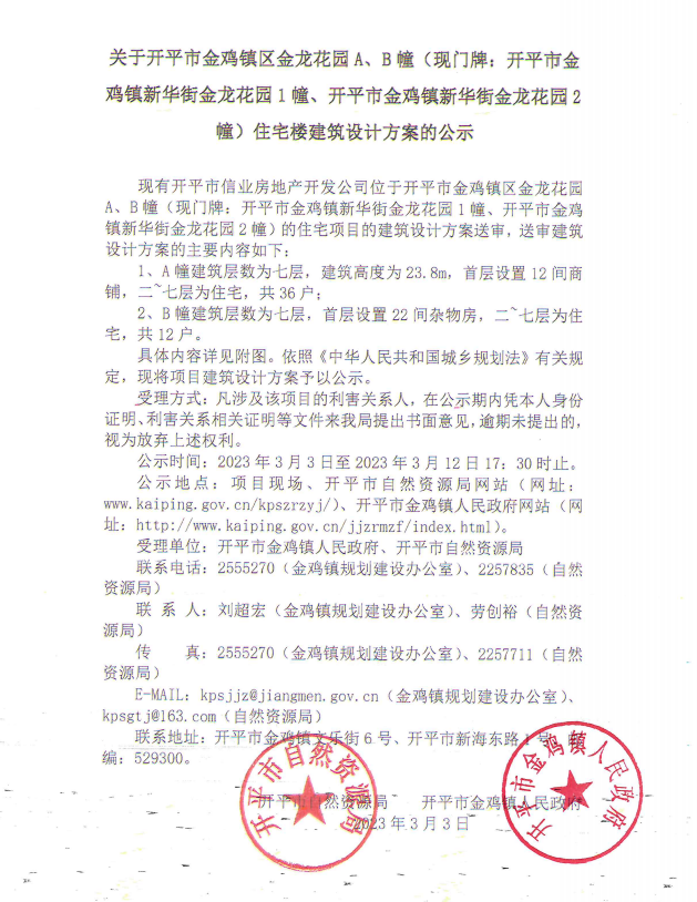 關(guān)于開(kāi)平市金雞鎮(zhèn)區(qū)金龍花園 A、B幢住宅樓建筑設(shè)計(jì)方案和圖紙的公示
