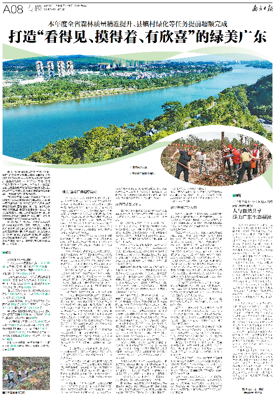 8月15日是全國生態(tài)日。目前,廣東今年全省完成森林質(zhì)量精準(zhǔn)提升357.99萬畝(其中林分優(yōu)化提升213.53萬畝、森林撫育提升144.46萬畝),縣鎮(zhèn)村綠化種植苗木2108.2萬株。在今年上半年提前超額完成全年度林分優(yōu)化提升任務(wù)的基礎(chǔ)上,綠美廣東生態(tài)建設(shè)的兩項(xiàng)關(guān)鍵數(shù)據(jù)仍在不斷攀升,全省綠化造林的熱情不減。 自2022年底,《中共廣東省委關(guān)于深入推進(jìn)綠美廣東生態(tài)建設(shè)的決定》審議通過以來,森林質(zhì)量精準(zhǔn)提升等“六大行動(dòng)”不斷推進(jìn),多項(xiàng)關(guān)鍵生態(tài)指標(biāo)顯著向好。如今的廣東大地,多樣的森林類型、豐富的濕地環(huán)境不僅為廣東1.2億常住人口創(chuàng)造良好的居住環(huán)境,更為逾6600種野生高等植物、近1100種陸生野生脊椎動(dòng)物和超12000種昆蟲提供家園。 從“綠起來”到“美起來”,綠美廣東生態(tài)建設(shè)帶來的變化正切實(shí)惠及廣大群眾。從粵北的廣袤森林,到粵東粵西的綿長海岸,再到珠三角的森林城市群,森林質(zhì)量的悄然變化不僅美了環(huán)境,更創(chuàng)造了致富增收新機(jī)遇,生態(tài)產(chǎn)品及其價(jià)值實(shí)現(xiàn)方式進(jìn)一步豐富——綠美廣東生態(tài)建設(shè)“看得見、摸得著、有欣喜”的愿景逐步走進(jìn)現(xiàn)實(shí)。 《南方日?qǐng)?bào)》專版報(bào)道 “綠美”重點(diǎn)任務(wù)超額完成 今年以來,廣東以“超額完成,看得見、摸得著、有欣喜”為要求,加速推進(jìn)森林質(zhì)量精準(zhǔn)提升和綠美廣東生態(tài)建設(shè)示范點(diǎn)、示范帶建設(shè),帶動(dòng)提升城鄉(xiāng)綠化美化水平。截至8月初,廣東已完成林分優(yōu)化提升213.53萬畝,森林撫育提升144.46萬畝,完成新造林撫育131.25萬畝;市、縣、鎮(zhèn)新增綠化面積32003.3畝、新增綠化帶長度5358.1公里;對(duì)全省122個(gè)縣區(qū)、1609個(gè)圩鎮(zhèn)、2.65萬個(gè)行政村進(jìn)行綠化,計(jì)劃種植苗木1235.7萬株,目前已種植2108.2萬株,超額完成計(jì)劃任務(wù)。完成高速公路出入口綠化品質(zhì)提升超100處,國省道綠化品質(zhì)提升超1000公里。 兩項(xiàng)重要工作的提前完成,離不開林木種苗的有效保障。截至7月中旬,全省已落實(shí)苗木6703.71萬株,超量完成任務(wù);落實(shí)苗木單位128家,其中保障性苗圃65家,有力保障2024年林分優(yōu)化任務(wù)苗木需求。 此外,省林業(yè)局、省農(nóng)墾總局、省農(nóng)業(yè)農(nóng)村廳推進(jìn)8個(gè)總規(guī)模1200畝儲(chǔ)備能力120萬株的優(yōu)質(zhì)苗木儲(chǔ)備基地建設(shè),截至7月中旬,共采購儲(chǔ)備苗木約91.35萬株,儲(chǔ)備基地基礎(chǔ)設(shè)施建設(shè)也在有序開展。共安排各地各單位優(yōu)質(zhì)苗木約75.93萬株,進(jìn)一步優(yōu)化和保障縣鎮(zhèn)村綠化苗木供應(yīng)。 城鄉(xiāng)綠化美化,群眾可感可知。目前,全省已建設(shè)森林鄉(xiāng)村39個(gè)、綠美古樹鄉(xiāng)村15個(gè)、綠美紅色鄉(xiāng)村16個(gè)。全省共有古樹名木85561株,其中一級(jí)古樹770株,二級(jí)古樹4822株,三級(jí)古樹79888株,名木81株。計(jì)劃建設(shè)古樹公園20個(gè)、古樹搶救復(fù)壯瀕危古樹250株。目前已建設(shè)古樹公園3個(gè)、搶救復(fù)壯古樹112株。 堅(jiān)持“興綠”也為群眾打通“兩山”轉(zhuǎn)化致富路。廣東穩(wěn)步推進(jìn)集體林權(quán)制度改革,貫徹落實(shí)《深化集體林權(quán)制度改革方案》,研究制定出臺(tái)《廣東省深化集體林權(quán)制度改革實(shí)施方案》,創(chuàng)新公益林利用管理和林業(yè)發(fā)展用地保障,著力打造油茶、竹子、林草中藥材、花卉苗木、家具加工、香料香精、生態(tài)旅游、森林康養(yǎng)等林業(yè)產(chǎn)業(yè)集群,打造“粵林+”特色品牌;配套出臺(tái)《綠美廣東生態(tài)建設(shè)財(cái)政激勵(lì)政策》《廣東省省級(jí)以上公益林結(jié)合森林質(zhì)量分類差異化補(bǔ)償方案》,按計(jì)劃下達(dá)2023年綠美廣東生態(tài)建設(shè)激勵(lì)資金1.08億元,省級(jí)以上公益林平均補(bǔ)償標(biāo)準(zhǔn)提高至47元/畝。 省林業(yè)局相關(guān)負(fù)責(zé)人介紹,下半年是開展森林撫育的重要時(shí)間。省林業(yè)局將進(jìn)一步加大造林綠化督導(dǎo)力度,督促各地落實(shí)綠美廣東生態(tài)建設(shè)重點(diǎn)任務(wù)項(xiàng)目資金,嚴(yán)格按序時(shí)進(jìn)度開展造林撫育工作,確保9月底前全面完成森林撫育提升任務(wù)。 “同時(shí),緊密配合省委組織部、省交通、住建、農(nóng)業(yè)農(nóng)村廳等部門,加強(qiáng)對(duì)各地縣鎮(zhèn)村綠化工作指導(dǎo),抓好縣鎮(zhèn)村綠化后期管護(hù)工作。”該負(fù)責(zé)人說。 其中,森林防火和林業(yè)有害生物防治是完成森林撫育、守護(hù)綠美廣東生態(tài)建設(shè)成果的重要舉措。今年上半年,出動(dòng)近23萬人次開展森林防火工作,全省整改火災(zāi)隱患2134處,整改森林安全隱患1483處;松材線蟲病等林業(yè)有害生物防治作業(yè)面積超過400萬畝次,查處林業(yè)植物檢疫違法案件23宗。 在此基礎(chǔ)上,2024年度全省計(jì)劃建設(shè)生物防火林帶1809.269公里,造林面積達(dá)53804.07畝,將進(jìn)一步完善我省森林防火基礎(chǔ)設(shè)施建設(s