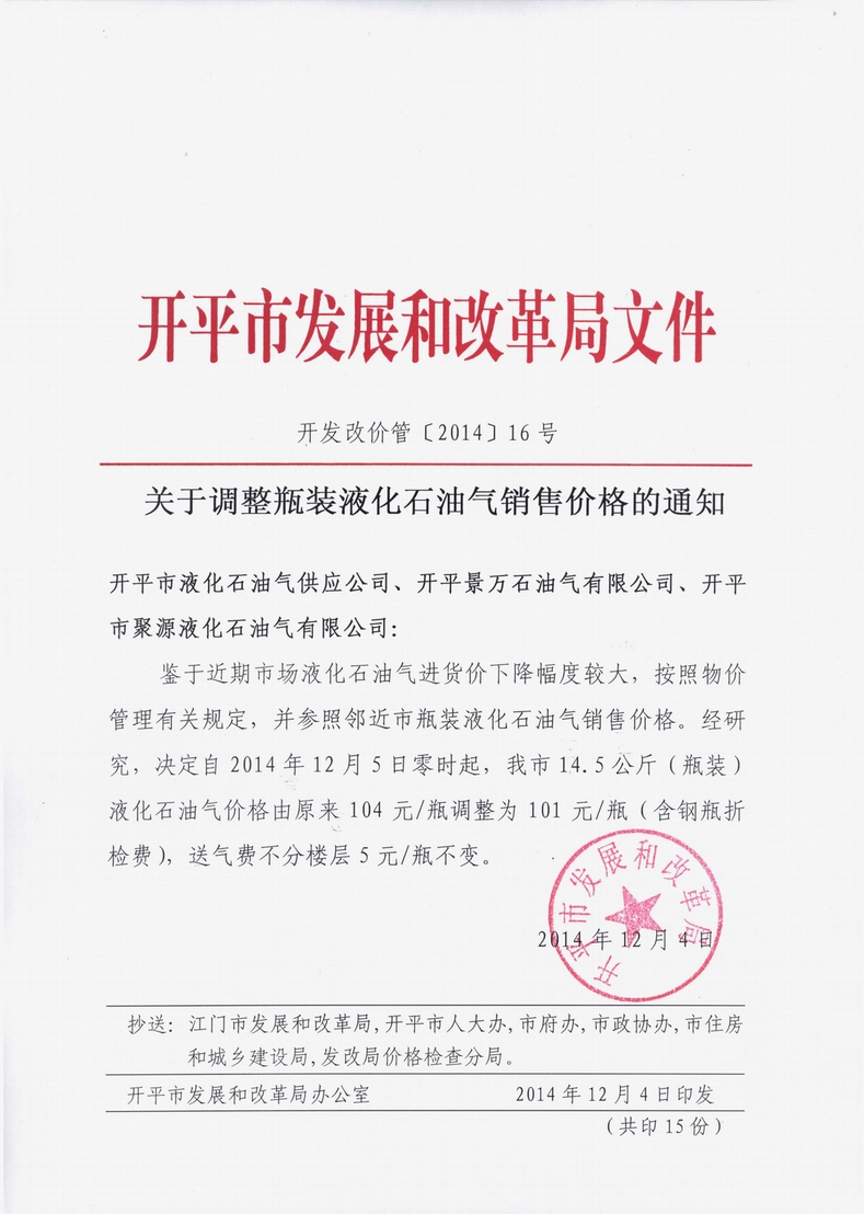 開發改價管[2014]16號 關于調整瓶裝液化石油氣銷售價格的通知