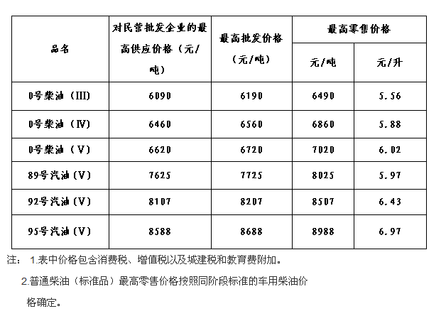 根據國家成品油價格形成機制,結合近一段時期國際市場油價變化情況,國家發展改革委決定自2016年12月14日24時起提高國內成品油價格,即在現行價格的基礎上,汽、柴油價格每噸分別提高435元和420元。這次成品油價格調整后,我省國V標準92號汽油從6.08元/升提高到6.43元/升,每升提高0.35元;國V標準95號汽油從6.59元/升提高到6.97元/升,每升提高0.38元;國V標準0號柴油從5.66元/升提高到6.02元/升,每升提高0.36元。