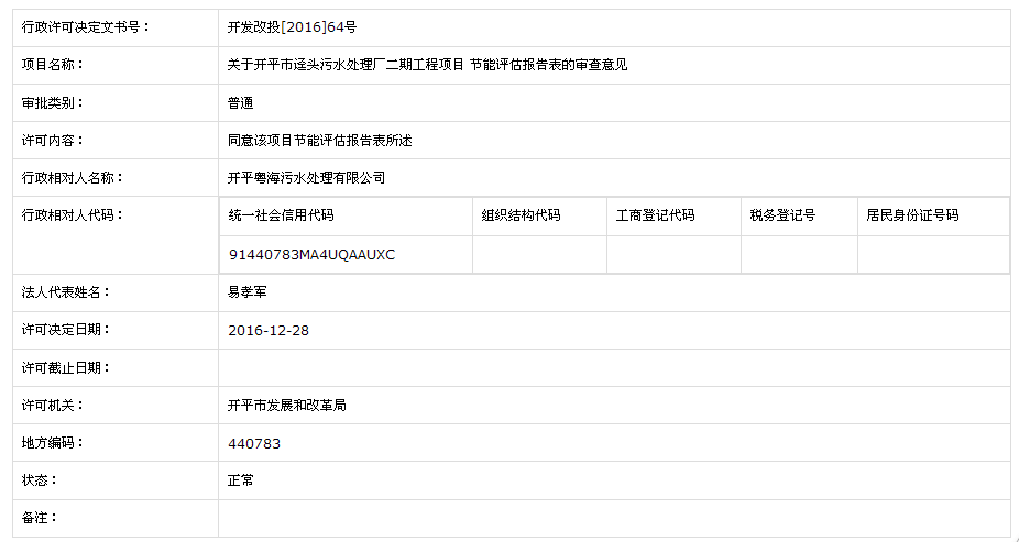 關于開平市逕頭污水處理廠二期工程項目 節能評估報告表的審查意見