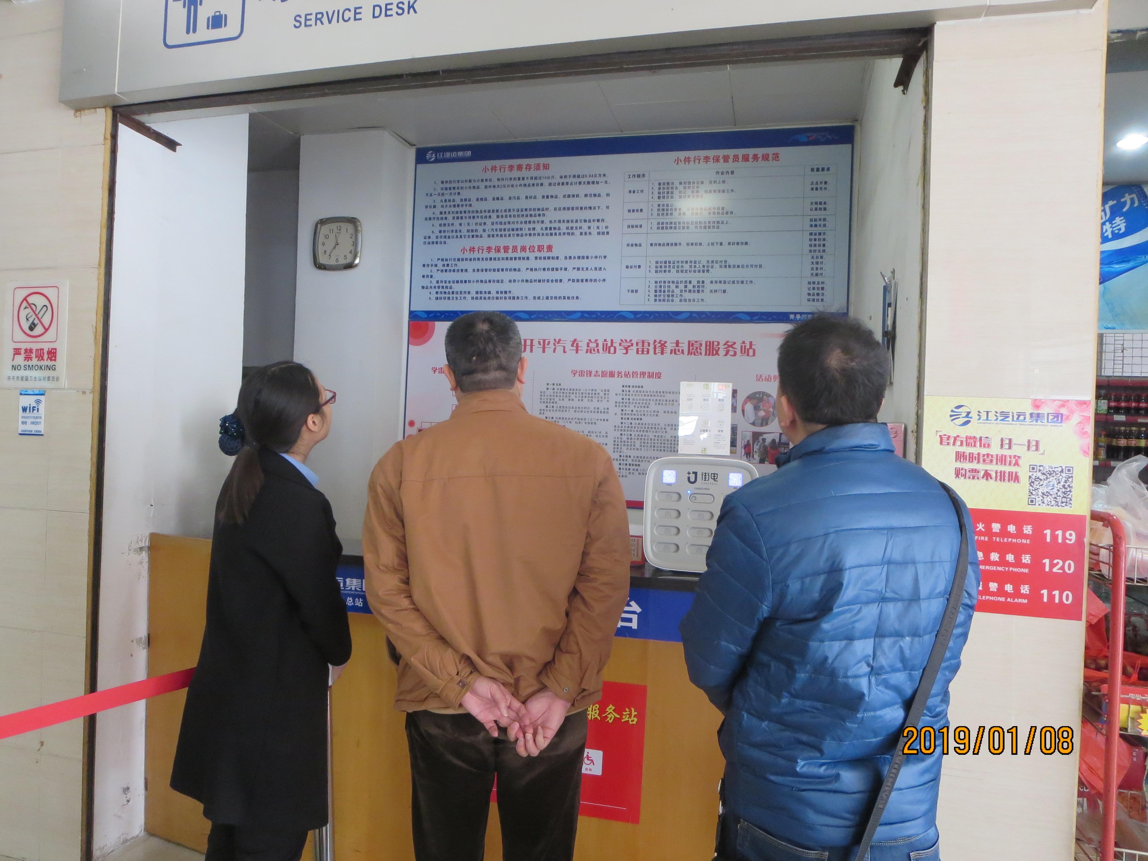 根據(jù)我局制定《開平市發(fā)改局2019年春運工作方案》的工作要求,從1月8日至1月15日期間,我局價格檢查分局領(lǐng)導(dǎo)多次帶隊到我市義祠客運站、水口客運站客運公司、開平汽車總站等3家汽車客運站巡查票價明碼價情況,通過多種渠道監(jiān)督春運客運票價情況,維護春運價格秩序,營造歡樂祥和的節(jié)日氣氛。