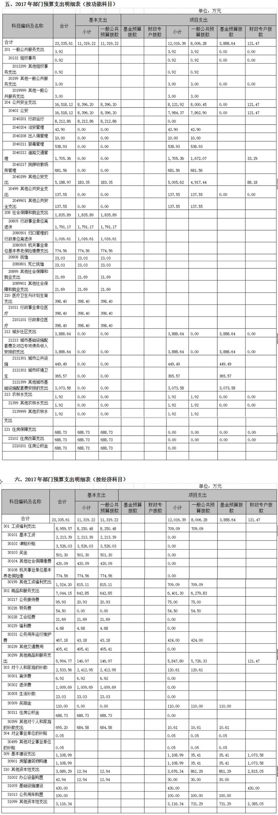 第二部分 2017年開平市公安局部門預算表