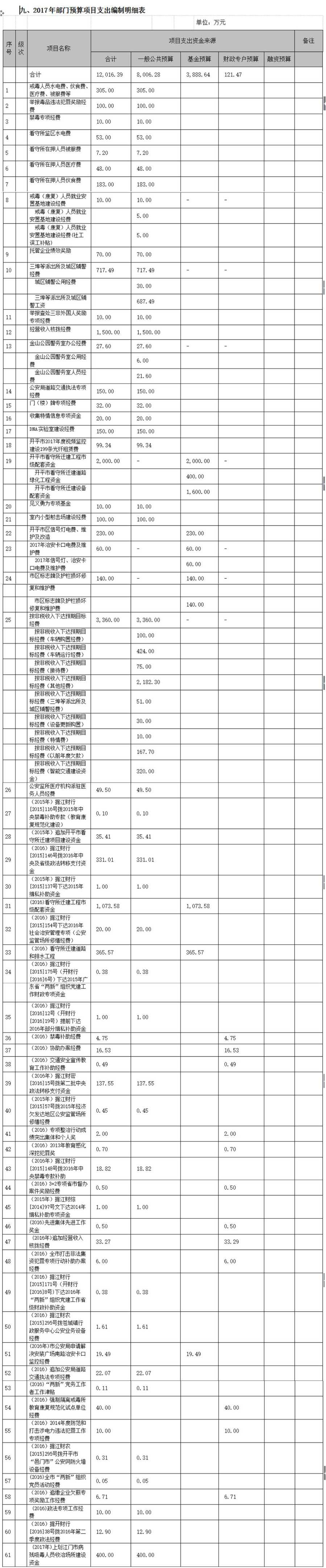 2017年度開平市公安局部門預算