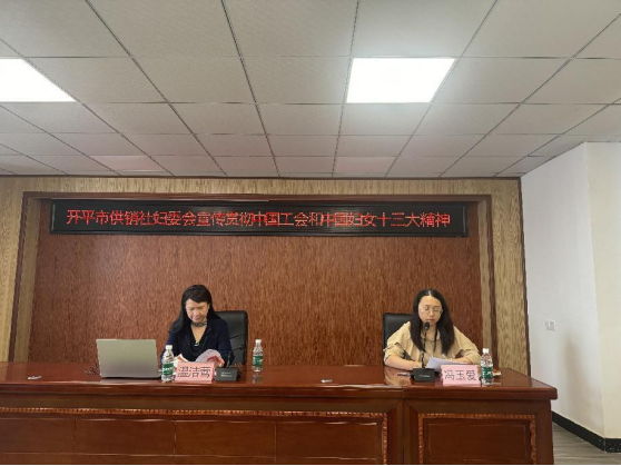 為深入學習宣傳貫徹習近平新時代中國特色社會主義思想和中國婦女十三大精神,進一步提高婦女干部職工的法律意識和維權意識,3月26日下午,開平市供銷社邀請開平市關心下一代工作委員會常務副主任溫潔鶯圍繞《家庭教育促進法》開展普法宣講,市社黨組成員、副主任、婦委會主任馮玉愛主持,婦委會全體人員參加。 會上,馮玉愛首先傳達貫徹黨的二十大精神、中國工會十八大精神和中國婦女十三大精神。她指出,要堅持黨對婦女工作的領導,要堅持全心全意依靠工人階級的根本方針和肯定廣大婦女是推動黨和人民事業發展的重要力量,把學習宣傳貫徹習近平總書記重要講話精神和全國兩會精神作為當前和今后一個時期的重要政治任務,在強國建設、民族復興的新征程上團結奮斗、勇毅前行。 隨后,溫潔鶯圍繞我國《家庭教育促進法》出臺的重要意義和家庭教育的根本任務、要求、責任、內容、方法等相關內容深入淺出地給大家做了詳細的講解。通過對現實生活中真實案例的剖析,大家對該法有了更深刻的認識,深刻理解了家庭教育對子女的身心健康具有重要作用。 家庭是人生的第一課堂,父母是孩子的第一任教師,家庭教育的質量關乎孩子成長、家庭幸福和社會和諧。此次“僑都巾幗大宣講”活動, 讓市社婦女干部職工充分認識家庭教育的重要意義,樹立正確的家庭教育理念,更好地促進未成年人健康成長,讓《家庭教育促進法》深入人心。