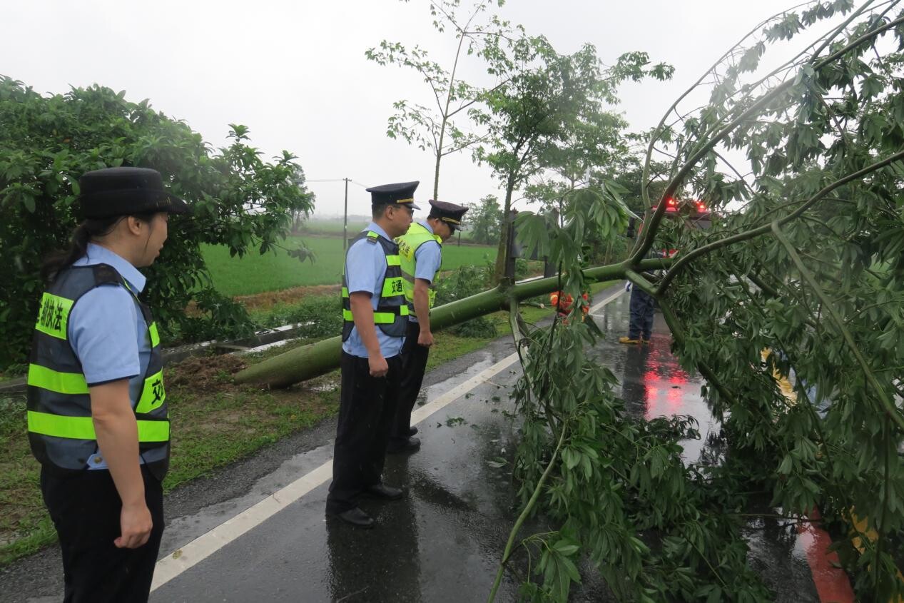 (執法人員巡查塘口路段發現倒伏樹障礙,及時清理確保道路安全暢通)