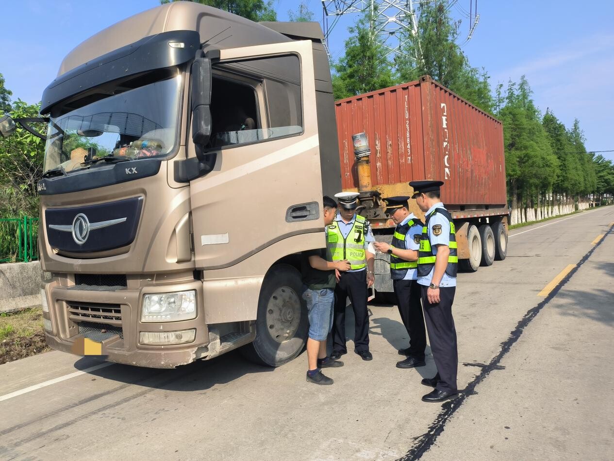 (執法人員對貨物運輸車輛進行執法檢查)