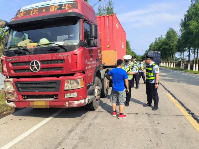 5月11日上午,公安交警部門與交通部門組成的聯合執法隊伍在塘口鎮、水口鎮周邊路段開展走訪摸排,初步鎖定涉事裝載目標車輛的行駛路線。通過在涉事車輛必經路段的嚴密布控與耐心蹲守,超限超載運輸車輛在5月11日及5月13日13時左右陸續駛入布控路段,聯合執法隊伍執法人員迅速將車輛攔截并將其帶至超限檢測點過磅稱重。