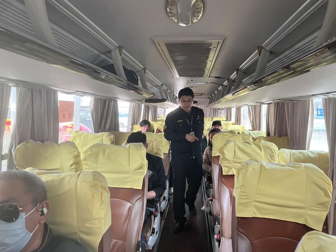 (市交通運輸服務中心工作人員檢查客運班車情況)