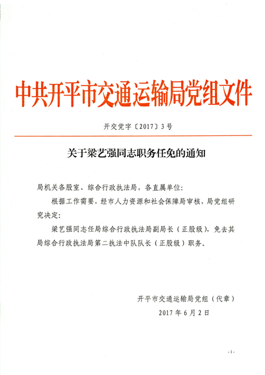 您當前的位置:首頁 > 開平市交通運輸局 > 政務公開 > 人事任免