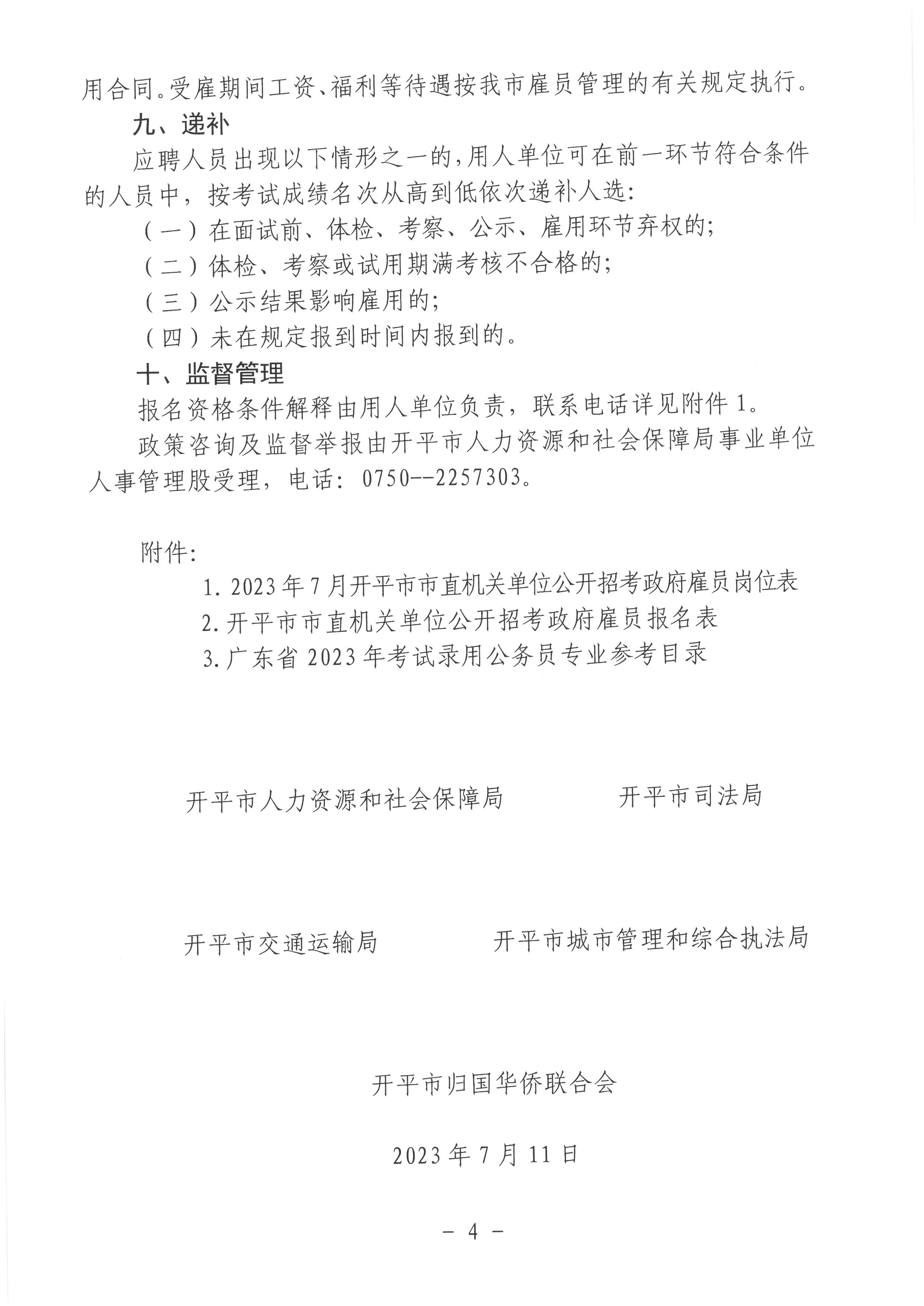 2023年7月開平市市直機關單位公開招考政府雇員公告