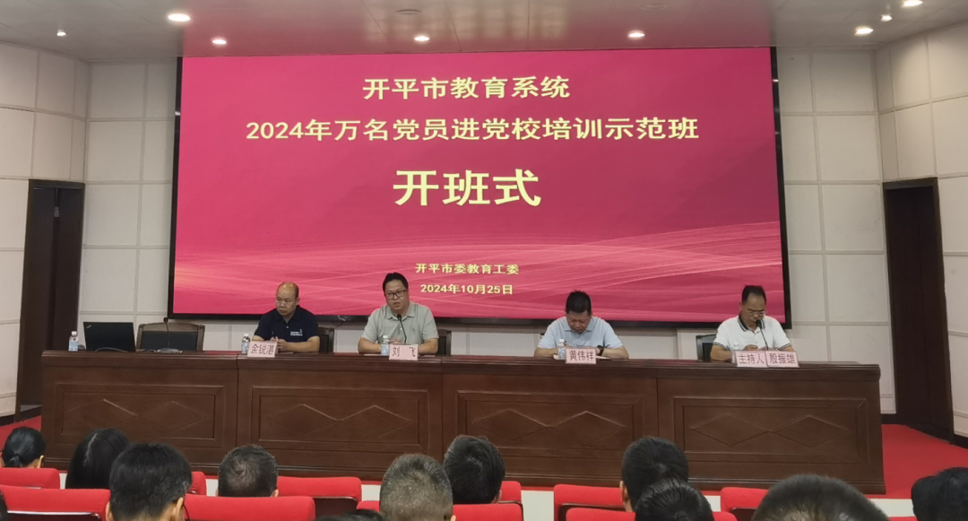 為深入學習貫徹習近平新時代中國特色社會主義思想和黨的二十屆三中全會精神,貫徹落實全省基層黨組織建設強基工程,加強教育系統黨的領導,提升學校黨組織書記的履職能力,10月25日,開平市委教育工委成功舉辦教育系統2024年萬名黨員進黨校培訓示范班。市委教育工委書記、教育局黨組書記、局長劉飛出席開班儀式并講話。