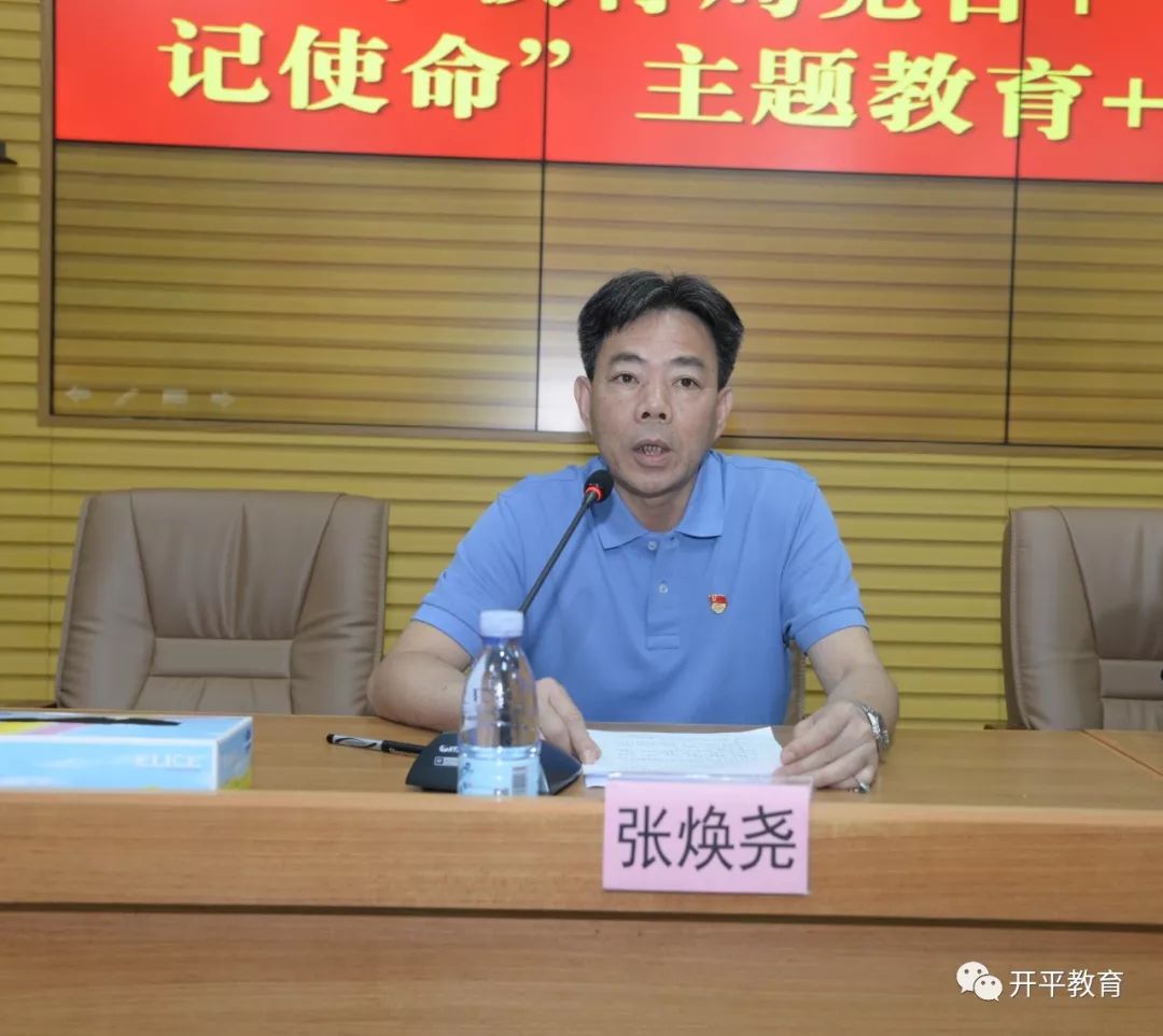 首先,局機關黨支部在七樓會議室召開會議。局機關黨委書記張煥堯主持。在會上,教育局黨組書記、局長龐信明為2018年度優(yōu)秀共產(chǎn)黨員頒發(fā)了榮譽證書,并鼓勵全體黨員學優(yōu)秀、爭優(yōu)秀、做優(yōu)秀,堅定信仰信念信心,錘煉忠誠干凈擔當?shù)恼纹犯瘢l(fā)揚優(yōu)良作風,勇創(chuàng)工作新業(yè)績。接著,開展“不忘初心、牢記使命”主題教育,一是龐信明局長傳達黨中央、省委“不忘初心、牢記使命”主題教育工作會議精神,要求全體黨員以積極的態(tài)度、振奮的精神參與到主題教育活動中來,筑牢信仰之基、補足精神之鈣、把穩(wěn)思想之舵,把不忘初心的標尺立起來,把牢記使命的責任扛起來,把黨員的先鋒形象彰顯出來,把黨組織的戰(zhàn)斗堡壘作用發(fā)揮出來,在守初心中鑄忠誠,在擔使命中顯風骨,在找差距中補短板,在抓落實中見成效,確保主題教育在教育系統(tǒng)落地、生根、發(fā)芽、開花、結果,推動市教育局成為開平市模范機關新標桿;二是進行黨課教育,邀請開僑中學政教處副主任譚杰老師為黨員們上黨史教育課,讓全體黨員重溫黨的光輝歷程和豐功偉績,教育全體黨員要堅定理想信念,踐行全心全意為人民服務的根本宗旨。譚主任的講課,內容豐富,條理清晰,生動精彩,感染力強,大家獲益良多。會議還組織全體黨員組織學習6月份組織生活清單三個必選內容和三個備選內容。