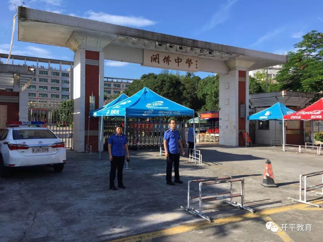城監大隊加強對考場周邊巡查,營造安全安靜考試環境;開平市氣象局每天及時更新天氣情況,為學校、學生應對天氣變化提供科學數據;電力、電信以及其他部門紛紛派出專業團隊,每天冒著酷暑,堅守崗位,為開平“平安高考”保駕護航。