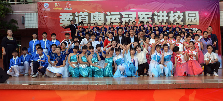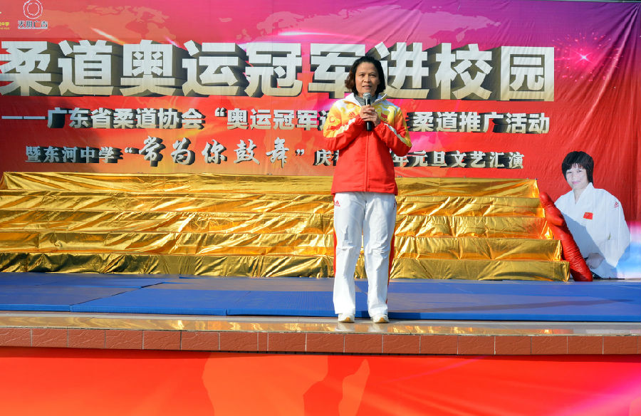 12月16日下午,廣東省柔道協(xié)會(huì)、開平市教育局、開平市東河中學(xué)聯(lián)合舉辦“奧運(yùn)冠軍進(jìn)校園”柔道推廣活動(dòng)暨東河中學(xué)慶祝元旦文藝匯演如期舉行。兩屆奧運(yùn)冠軍、廣東省重競技體育訓(xùn)練中心主任兼廣東省柔道協(xié)會(huì)會(huì)長冼東妹,廣東省柔道協(xié)會(huì)常務(wù)副會(huì)長張燦仰,廣東省柔道協(xié)會(huì)副秘書長黃永琴,廣東省柔道協(xié)會(huì)理事許榮杰,開平市政協(xié)副秘書長譚健雄,開平市教育局副局長殷振雄,共青團(tuán)開平市委副書記吳曉鈞,開平市體育局紀(jì)檢組長譚煥夑,開平市政協(xié)綜合科科長梁尚文,開平市政協(xié)辦主任科員梁國榮,東河中學(xué)全體師生、家長代表近兩千人參加了活動(dòng)。