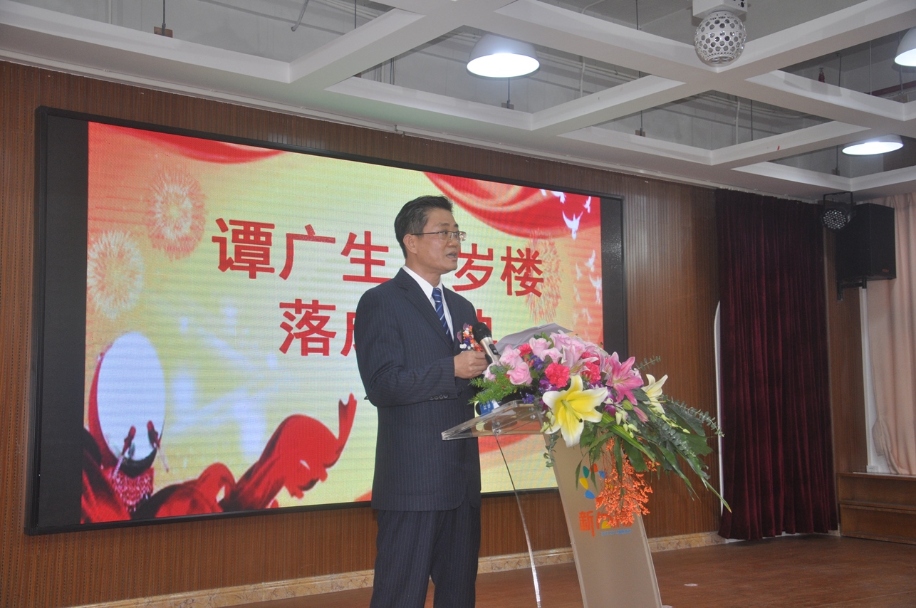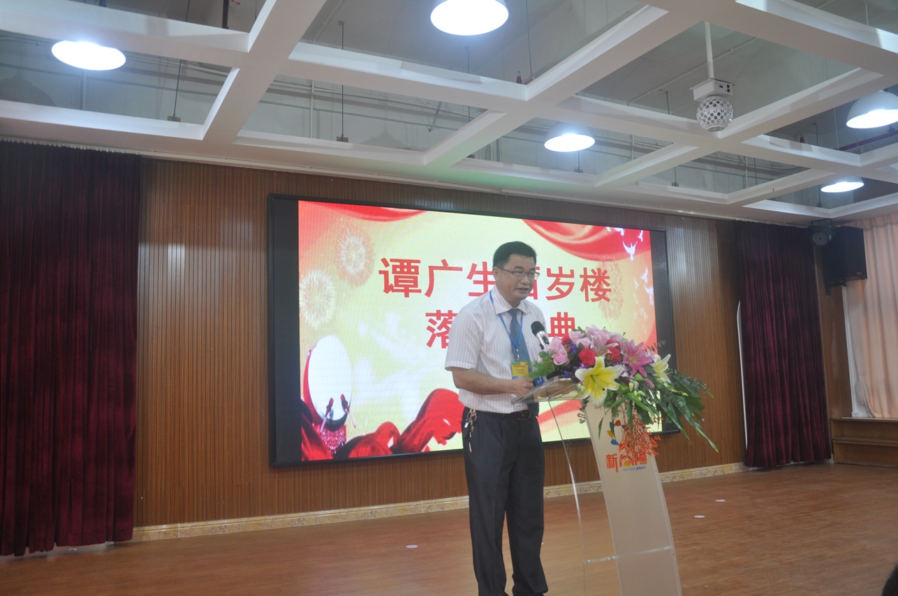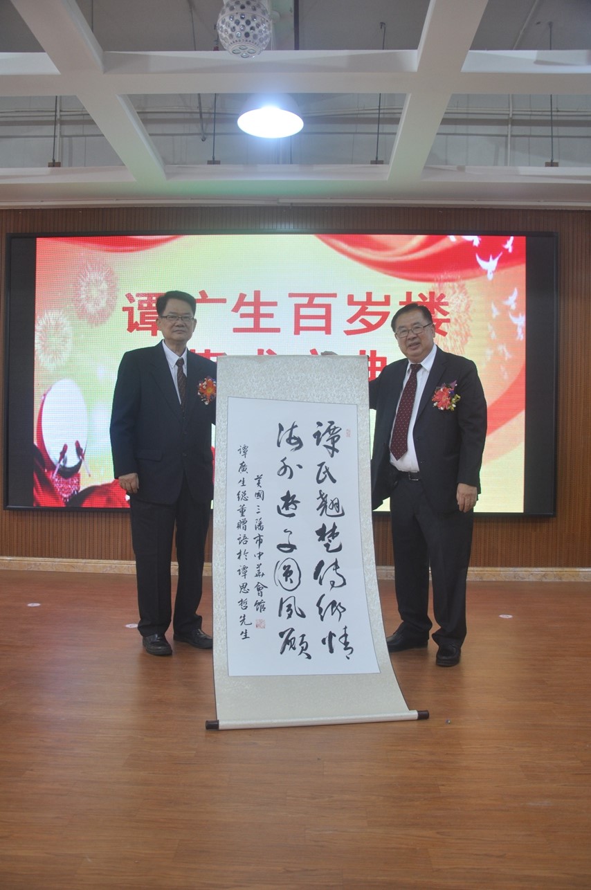 譚瑞彰先生代表譚廣生先生致送譚思哲先生贈言——“譚氏翹楚傳鄉情,海外游子圓夙愿。”以此表達自己對譚思哲先生的感激之情。譚廣生先生還特意在美國錄制了視頻為落成慶典致辭,表達了這位百歲老人的喜悅之情。開僑中學老師自編自演散文長詩《中國夢,百歲不老》,表達了對譚廣生這位百歲老華僑的崇敬之情!