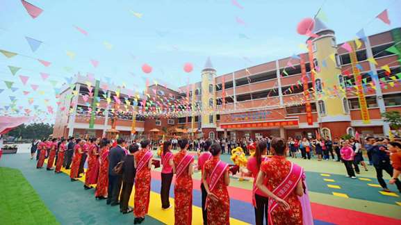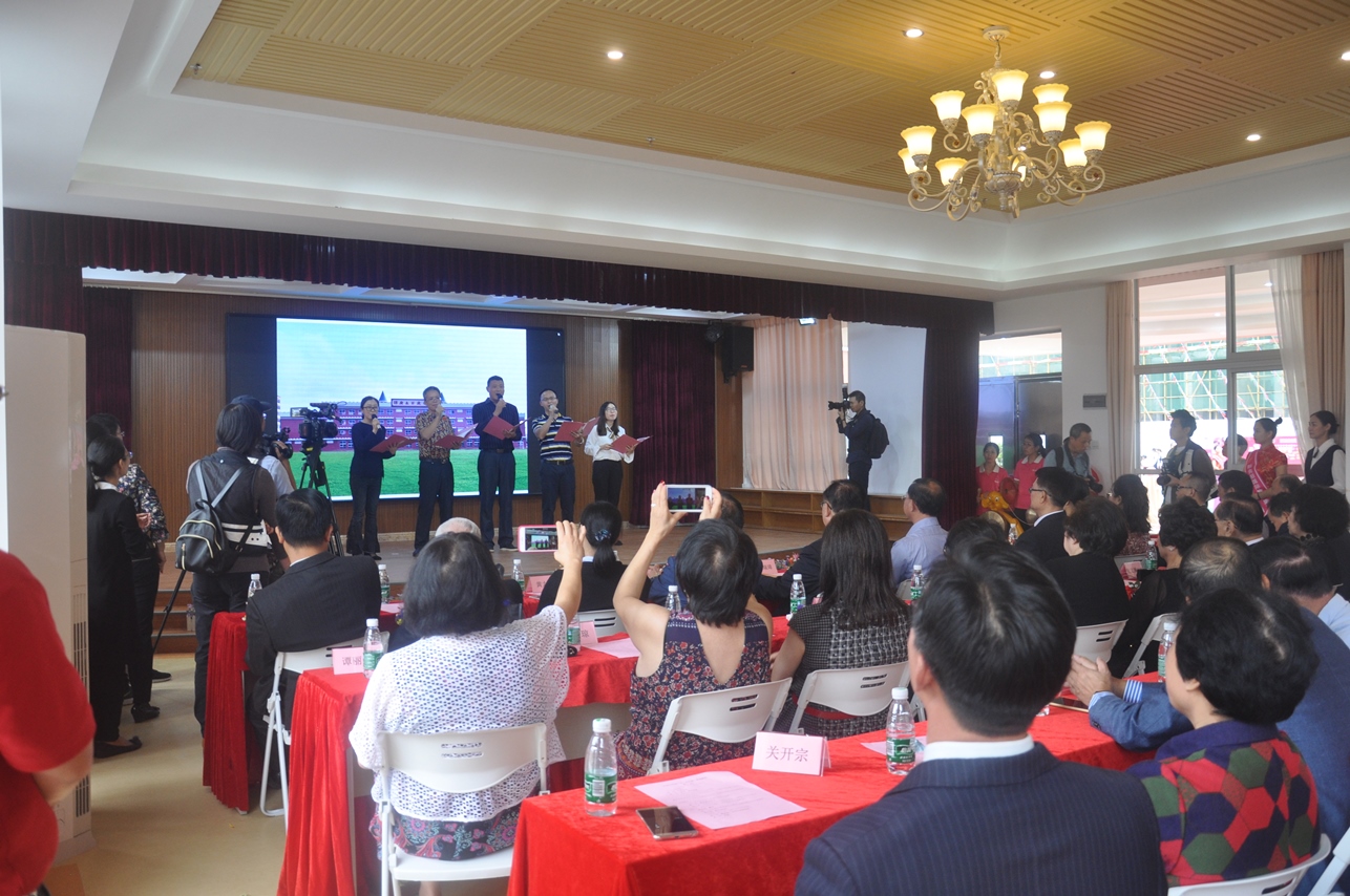 最后,開僑中學譚廣生百歲樓落成志慶剪彩儀式正式開始,禮炮齊鳴、鼓號同奏,掌聲熱烈。剪彩儀式圓滿結束。