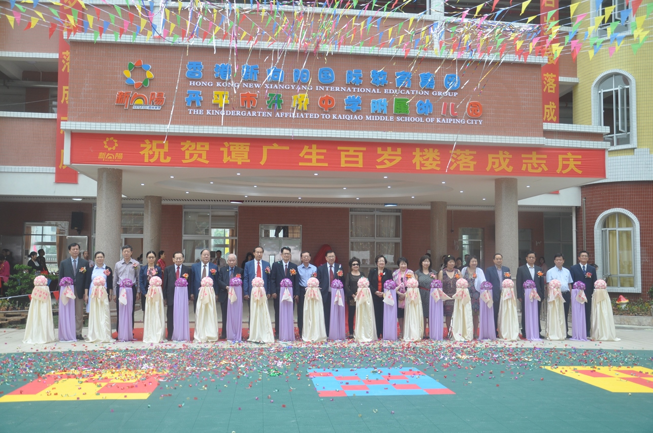 11月15日,開僑中學舉行譚廣生百歲樓落成慶典。百歲樓捐資者譚廣生先生的兒子、全美英端商工總會總理元老、三藩市華埠商人協會副會長譚瑞璋先生及其親屬、開平市領導梁民躍、顏海娜、陳百濃、黃力奔,開平市文化促進會會長譚思哲、開僑中學校董會副董事長張文瀾先生伉儷、開僑校友以及社會各界人士齊聚開僑,共享百歲樓落成的喜悅。