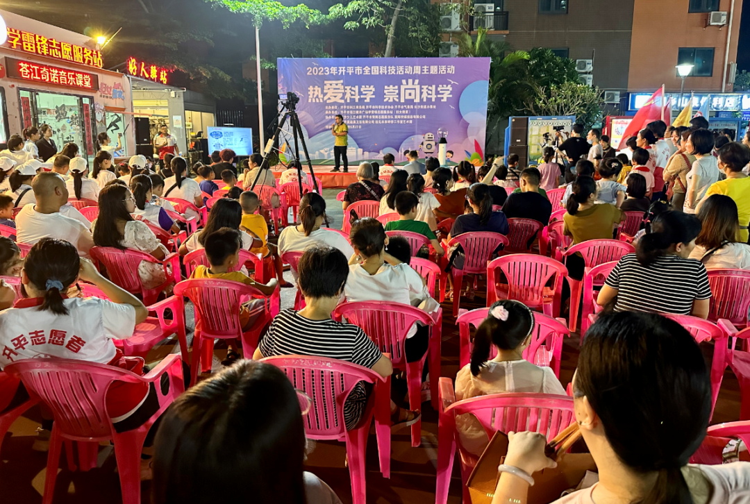 5月27日晚上,開平市2023年全國科技活動周主題活動在開平市蒼江健身廣場學(xué)雷鋒志愿服務(wù)站舉行,科普活動進(jìn)社區(qū),普及科學(xué)零距離,進(jìn)一步提升全民科學(xué)素養(yǎng)。市領(lǐng)導(dǎo)許永鋒出席活動。