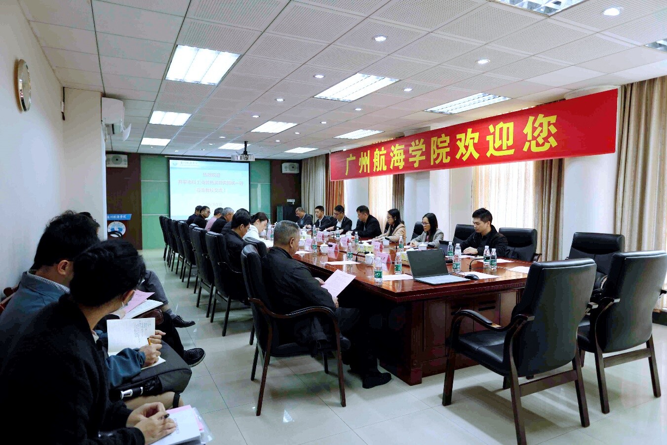 為全面落實(shí)省“百校聯(lián)百縣”、助力“百千萬(wàn)工程”行動(dòng),扎實(shí)推進(jìn)“雙百行動(dòng)”深入開(kāi)展,1月12日上午,應(yīng)廣州航海學(xué)院邀請(qǐng),開(kāi)平市科工商務(wù)局局長(zhǎng)吳勁夫帶隊(duì)赴廣州航海學(xué)院開(kāi)展落實(shí)“雙百行動(dòng)”科技服務(wù)產(chǎn)業(yè)交流活動(dòng),水口水暖衛(wèi)浴行業(yè)協(xié)會(huì)、開(kāi)平市翰森衛(wèi)浴有限公司及市科工商務(wù)局相關(guān)領(lǐng)導(dǎo)、干部參加。廣州航海學(xué)院副校長(zhǎng)畢修穎、科研處處長(zhǎng)溫兆麟、副處長(zhǎng)曹輝、航運(yùn)經(jīng)貿(mào)學(xué)院院長(zhǎng)唐宋元、黨政辦雙百行動(dòng)辦公室負(fù)責(zé)同志及學(xué)校相關(guān)重點(diǎn)學(xué)科的專家代表十余人出席活動(dòng)。