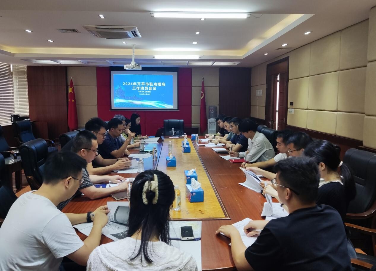 4月26日上午,2024年開平市駐點招商工作動員會議在開平市科工商務局召開,開平市科工商務局副局長梁宏健,翠山湖管委會黨工委委員、副主任梁曉鋒,以及開平市科工商務局投促股、招商服務中心和新一批駐點招商隊伍的全體人員參加了會議。