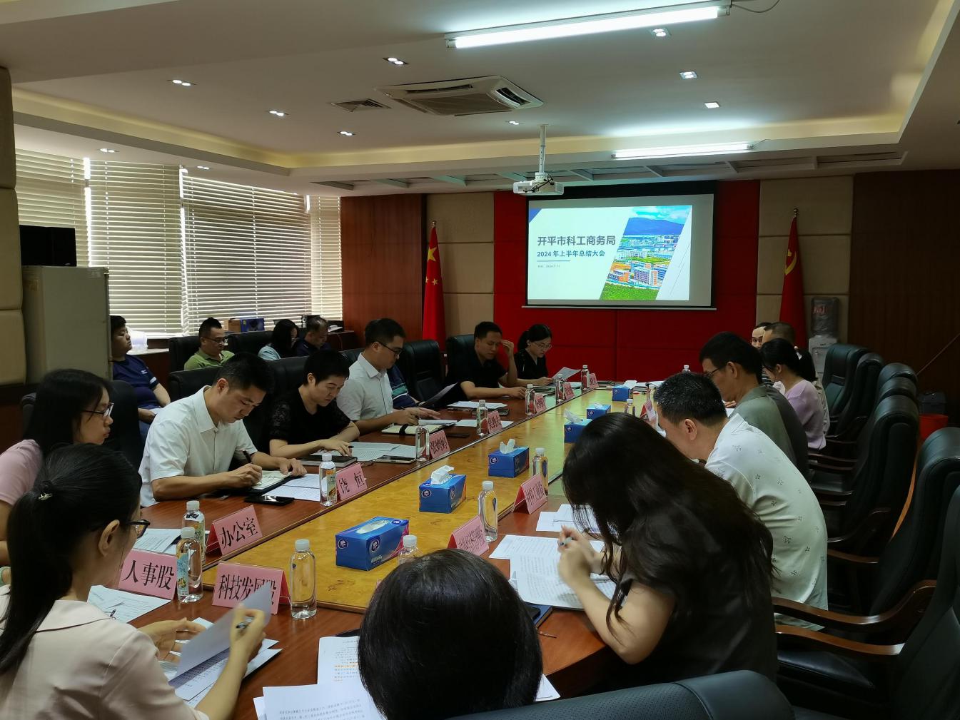 7月31日下午,開平市科工商務局召開半年工作總結會議,梳理總結上半年工作情況,謀劃部署下半年工作安排。局領導班子及全體干部職工參加會議。