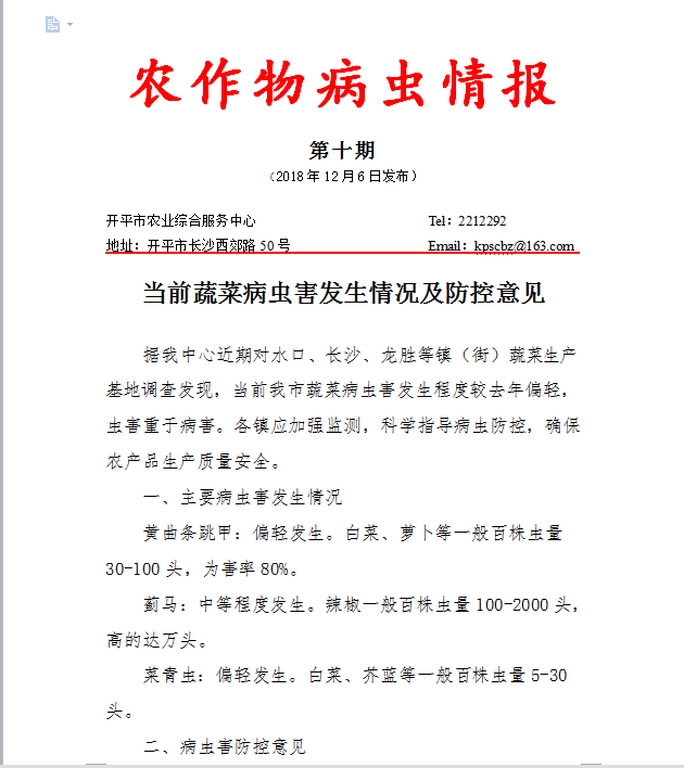 開平市病蟲情報2018年第10期(蔬菜)